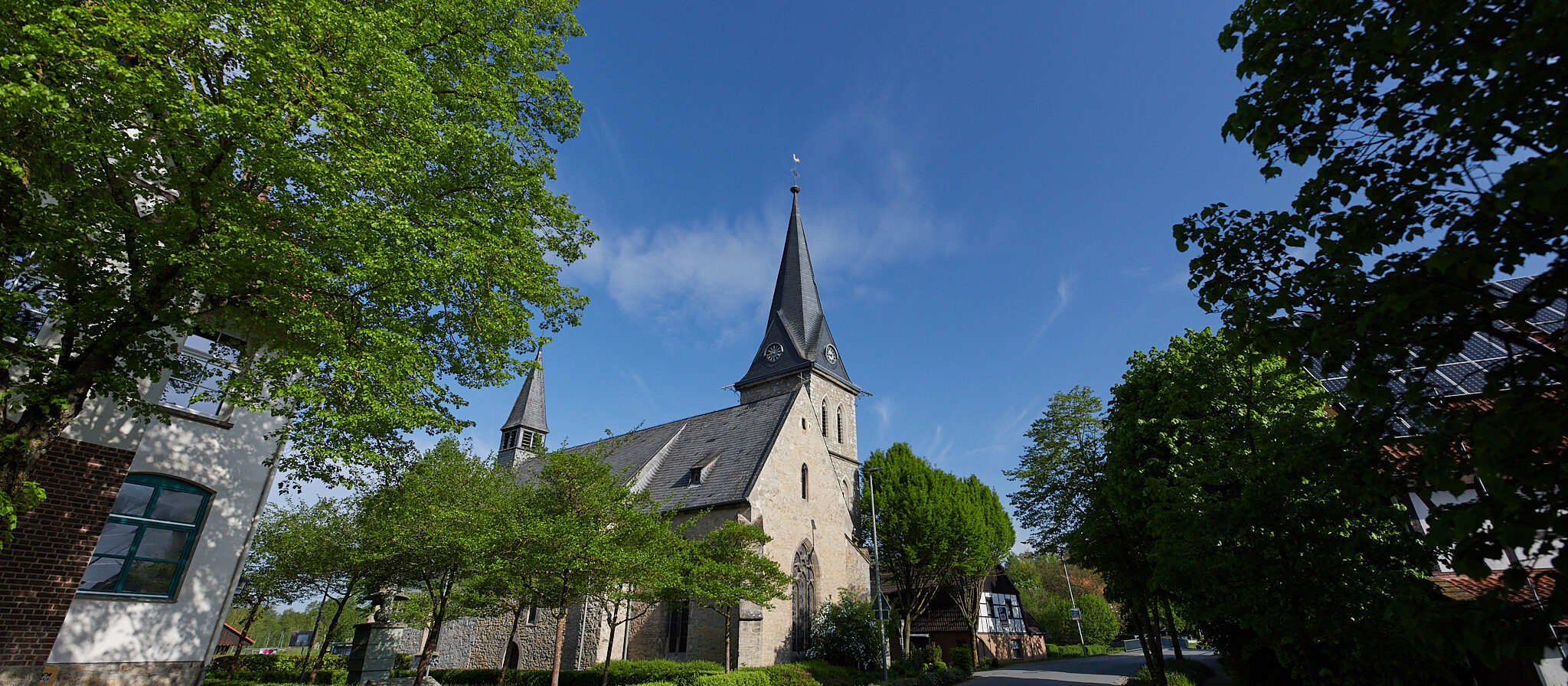 1384 war in Riesel bereits eine Kerken, im damaligen Sinn wohl eine Kapelle, und um 1450 wurde diese Kapelle durch den Anbau eines Chores vergrößert. Um 1900 hat man die Kirche erheblich erweitert, 1923 wurde der große Kirchturm errichtet und 1975 die heutige Orgel eingebaut. (Zusammengestellt durch Michaela Tegetmeier nach dem Buch „Brakel – Ein Stadtporträt“ von Anna Bálint, 2002, Hsgb. Stadt Brakel)