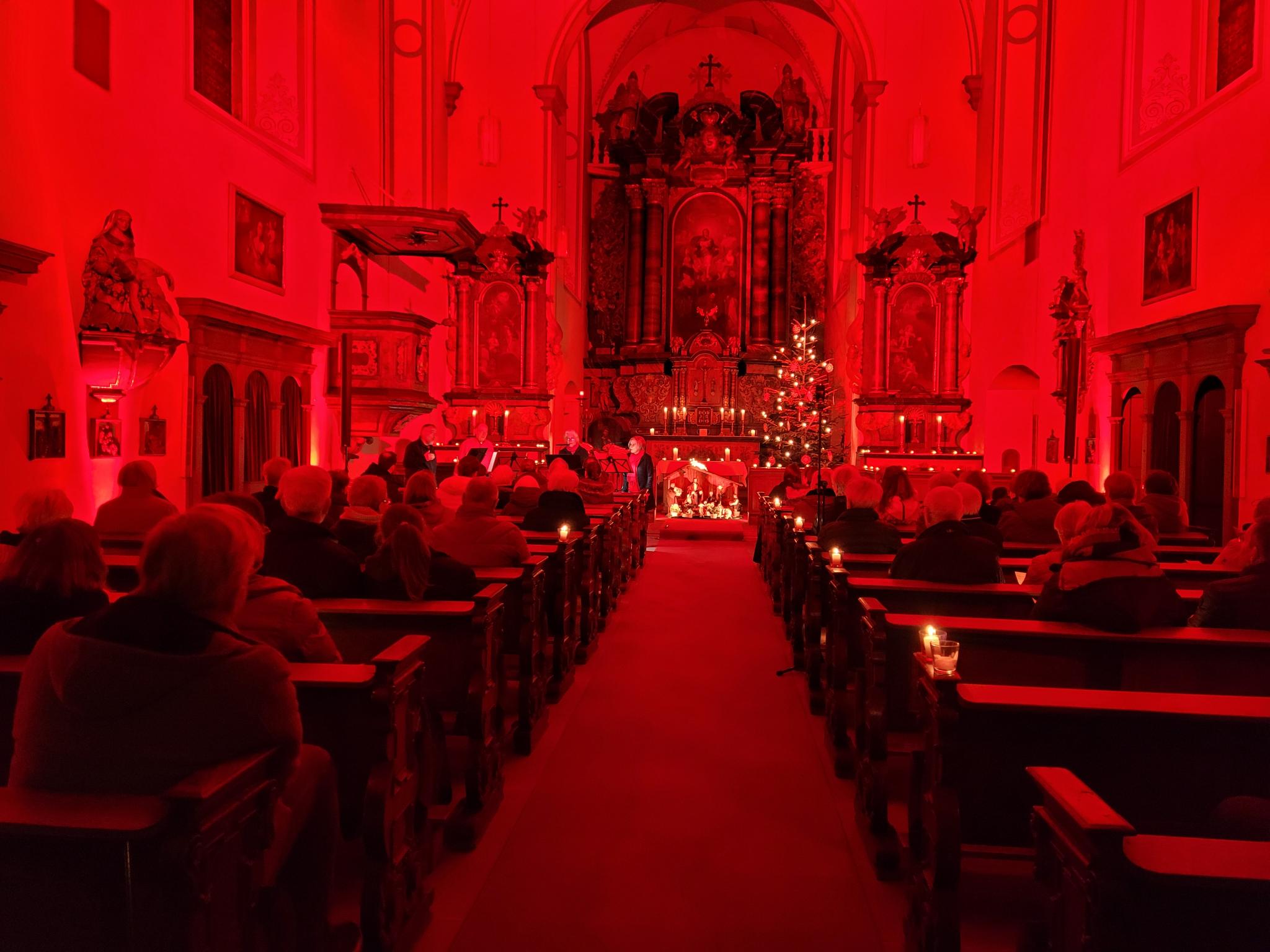 Auch wenn es uns oft so vorkommt, als sei das Dunkle in der Welt übermächtig, dürfen wir auf das Licht hoffen, das nicht nur den Kirchenraum, sondern auch unsere Herzen erfüllt und uns dafür eintreten lässt, dass es heller wird in der Welt und die Friedensbotschaft durch uns ein klein wenig Wirklichkeit werden kann“, hieß es schon bei der Begrüßung und der Abend endete sehr eindrücklich mit dem schwedischen Schlusslied „Nacht, Nacht, heilige Nacht“, welches die weihnachtliche Friedensbotschaft nochmals sehr tiefsinnig aufgriff.