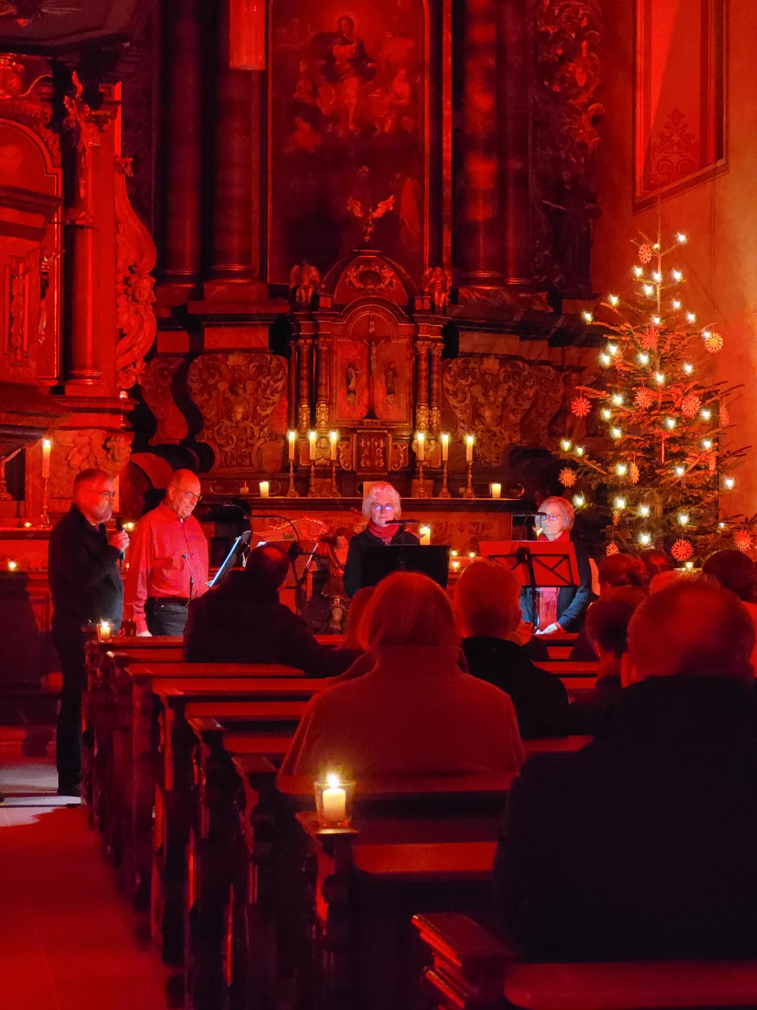 Eine Mischung aus vierstimmiger Chormusik, adventlichen und weihnachtlichen Liedern zum Mitsingen sowie einigen Texten bot den Besucherinnen und Besuchern die Möglichkeit, mitten in den weihnachtlichen Vorbereitungen zur Ruhe zu kommen und sich auf die Botschaft von Weihnachten einzulassen.