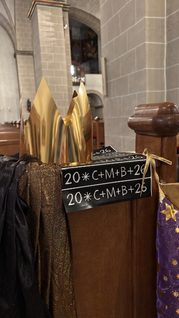 - Kronen bzw. Sterne sticken und beschriften. Diese hängen an einer Tür in der Kirche. Dadurch wollen sie auf sich und das Sternsingerprojekt aufmerksam machen.